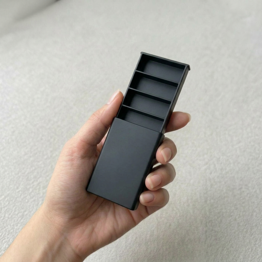 When you're ready, a single push glides the tray open — smooth, satisfying, effortless.